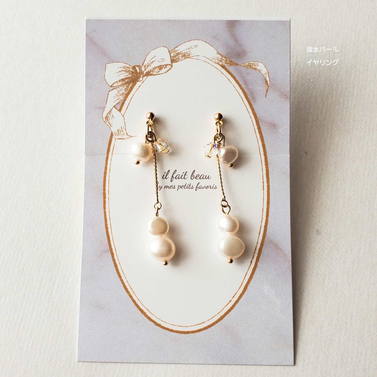 【完成品】淡水パール×チェーン ピアス